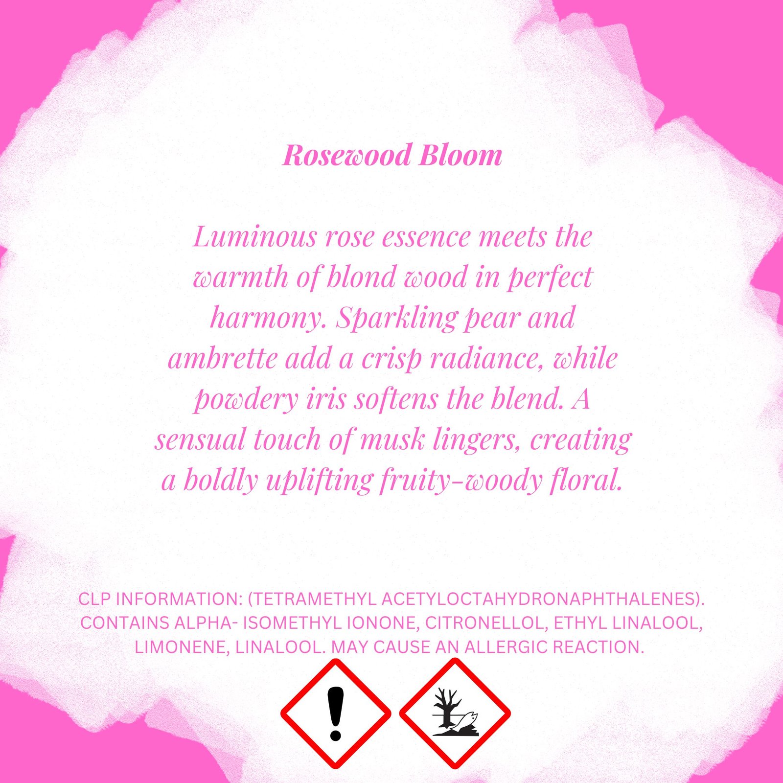 Luminous rose essence meets the warmth of blond wood in perfect harmony. Sparkling pear and ambrette add a crisp radiance, while powdery iris softens the blend. A sensual touch of musk lingers, creating a boldly uplifting fruity-woody floral.