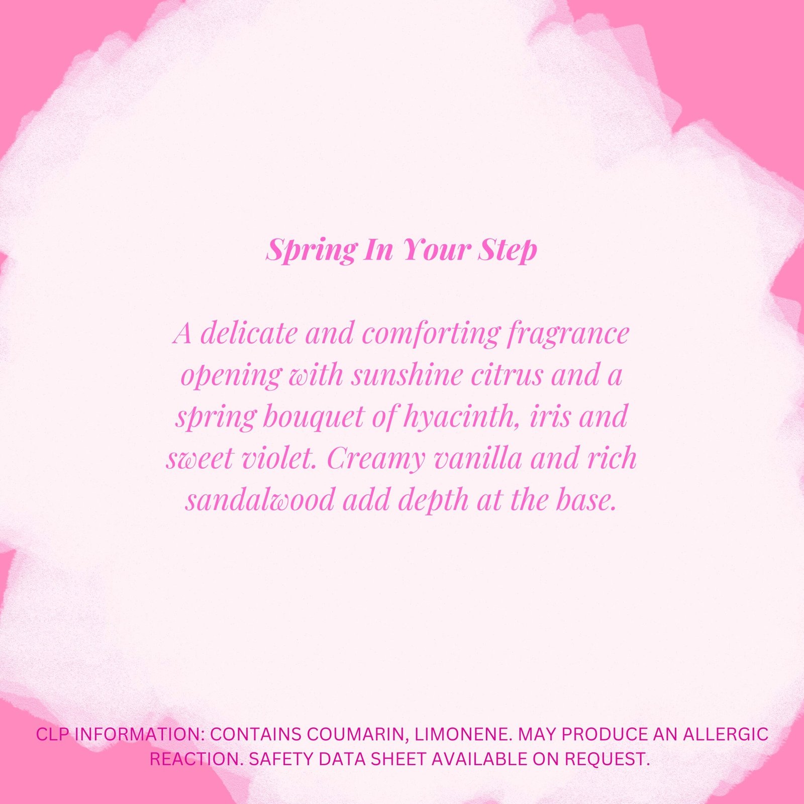 A delicate and comforting fragrance opening with sunshine citrus and a spring bouquet of hyacinth, iris and sweet violet. Creamy vanilla and rich sandalwood add depth at the base.