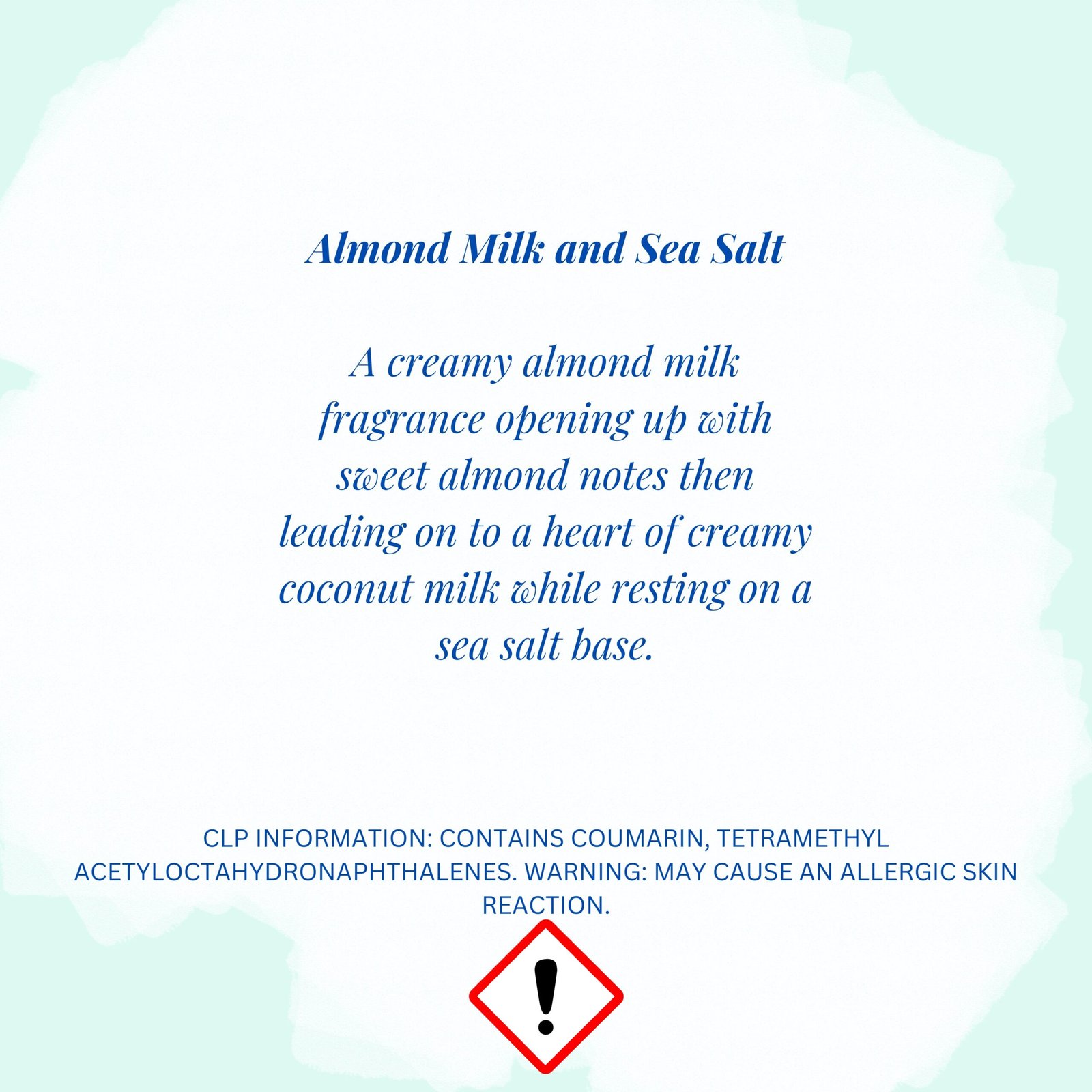 A creamy almond milk fragrance opening up with sweet almond notes then leading on to a heart of creamy coconut milk while resting on a sea salt base.